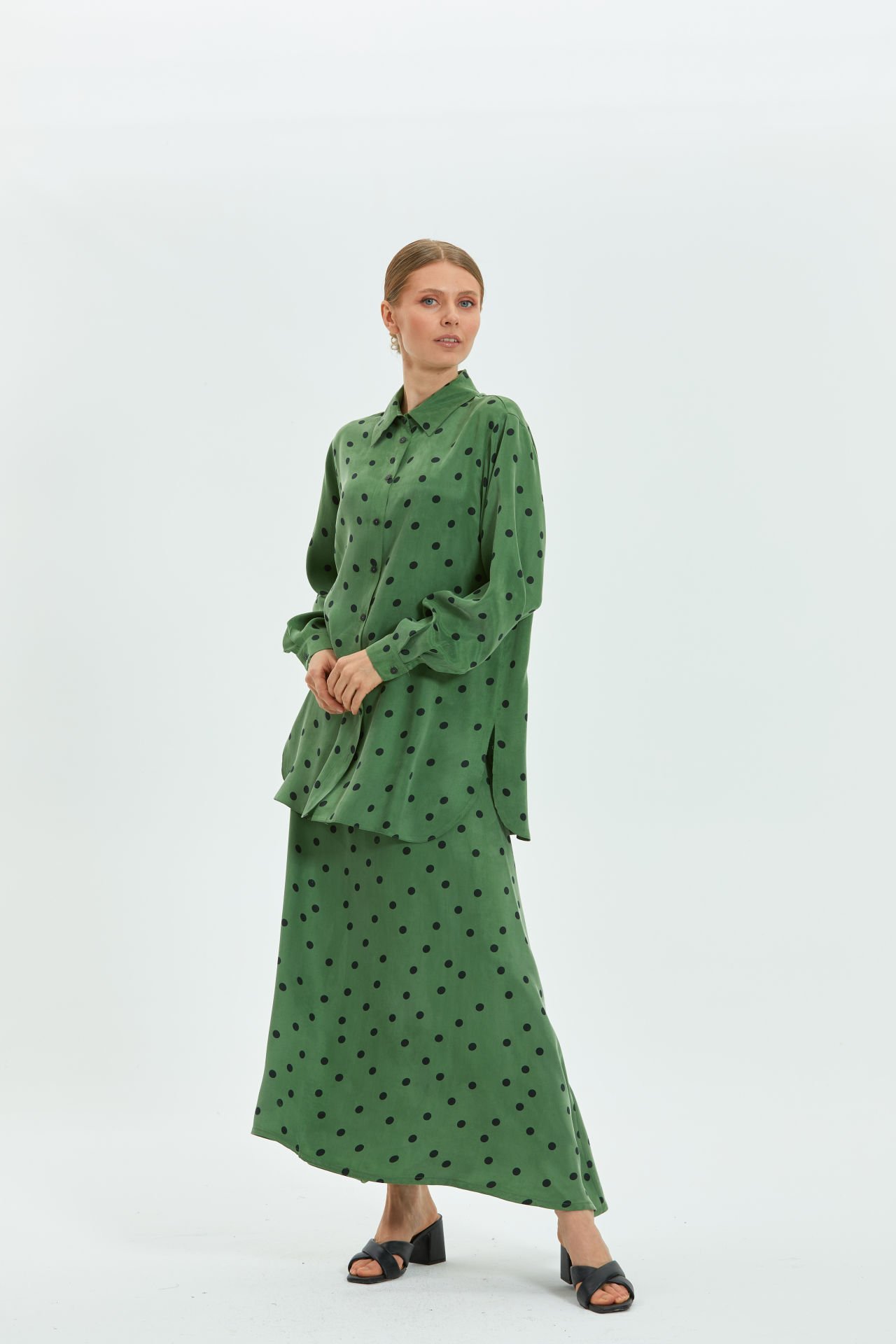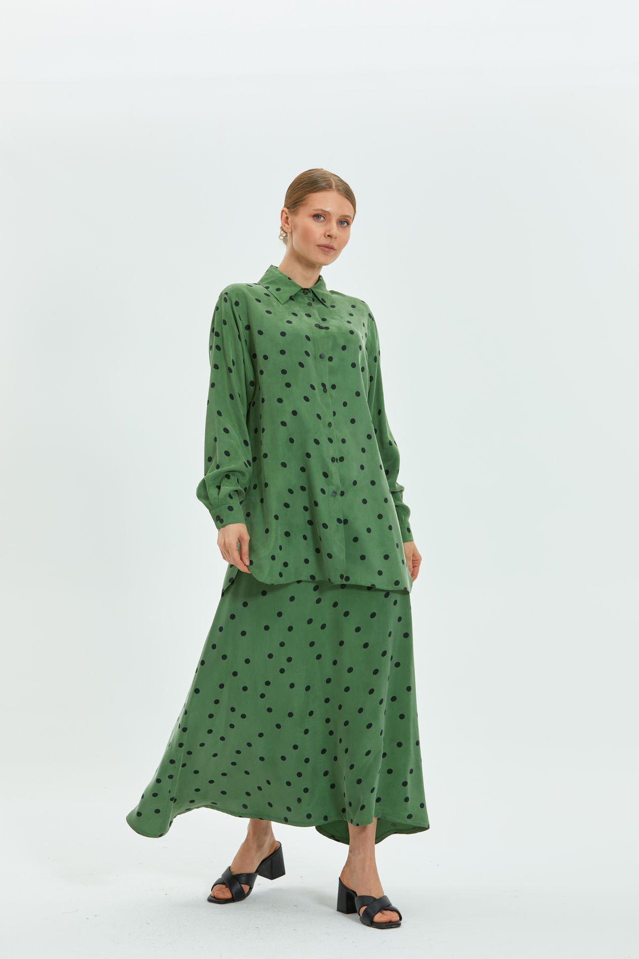 Puantiyeli takım, rahatlığı ve zamansız tasarımı sayesinde her sezon trend kalır. Yumuşak kumaşı ve rahat kesimi, gün boyu konfor sağlar. Birçok ortamda zamansız ve özgün bir görünüm sunar.