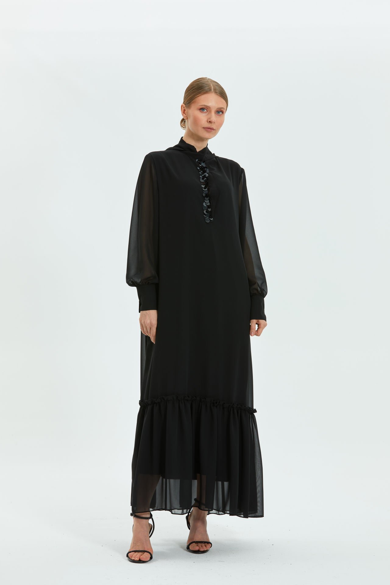 Rahat kesim elbise, gün boyu konfor ve şıklığı bir arada sunar. Hafif ve nefes alan kumaşı sayesinde hareket özgürlüğü sağlar. Günlük kullanımdan özel anlara kadar idealdir.