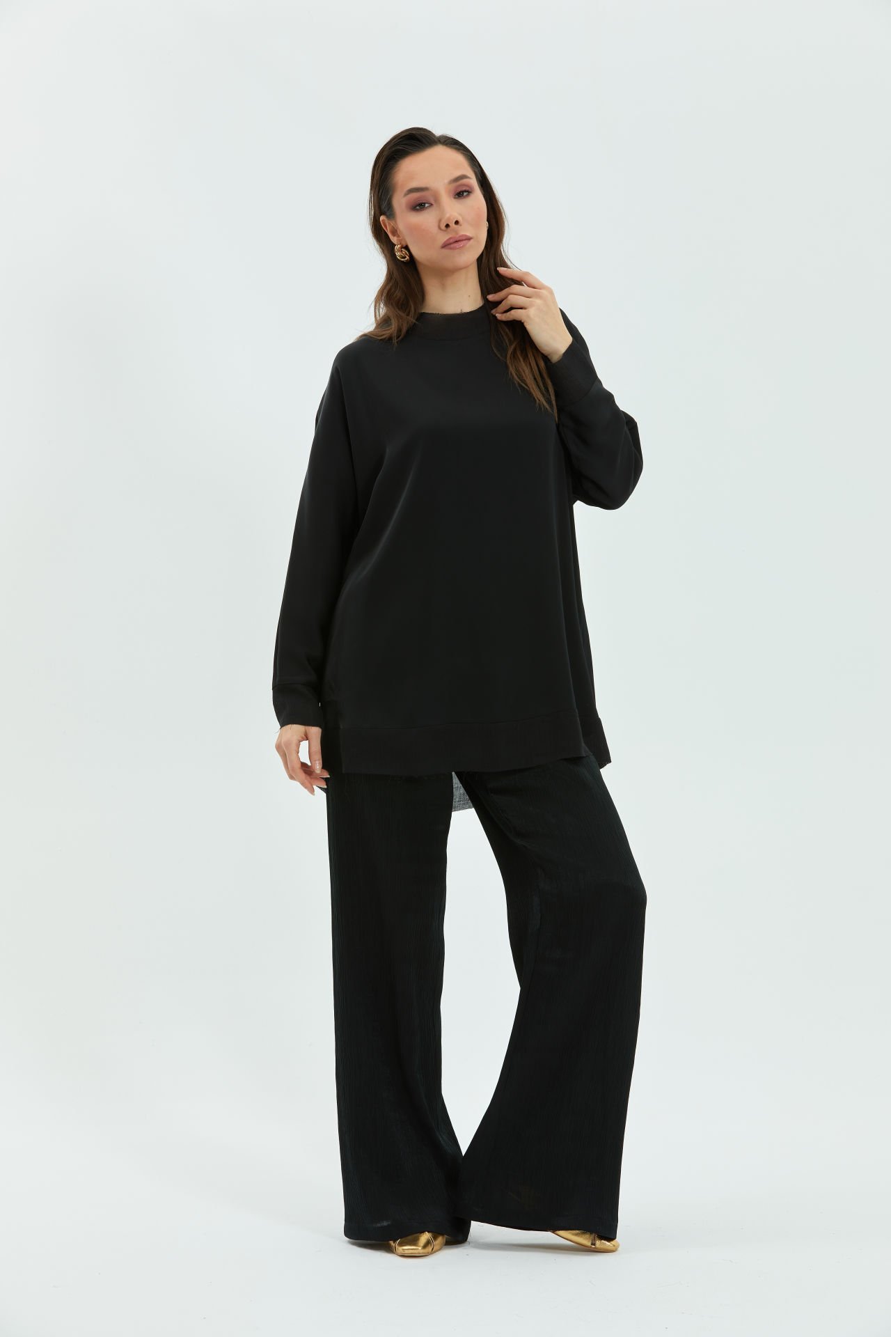 İkili takım, %100 viskon kumaşı sayesinde yumuşak dokusu ve nefes alabilir yapısıyla üstün konfor sunar. Gün boyu stilinizi korurken, her ortamda özgürce hareket etmenizi sağlar.