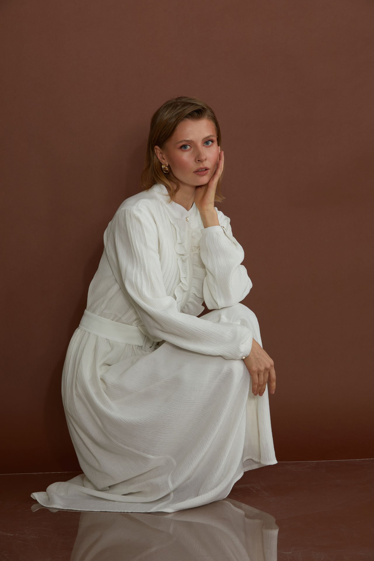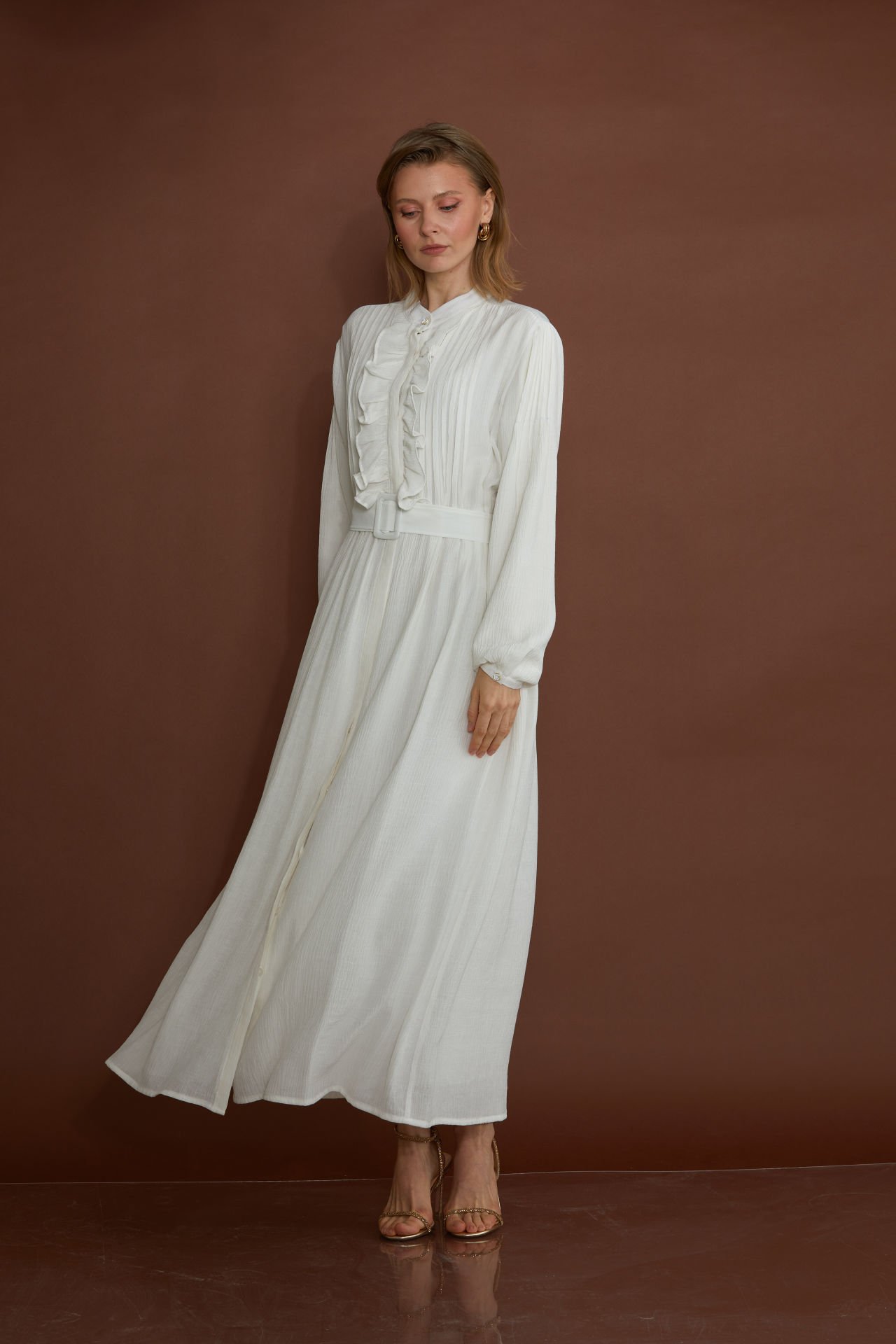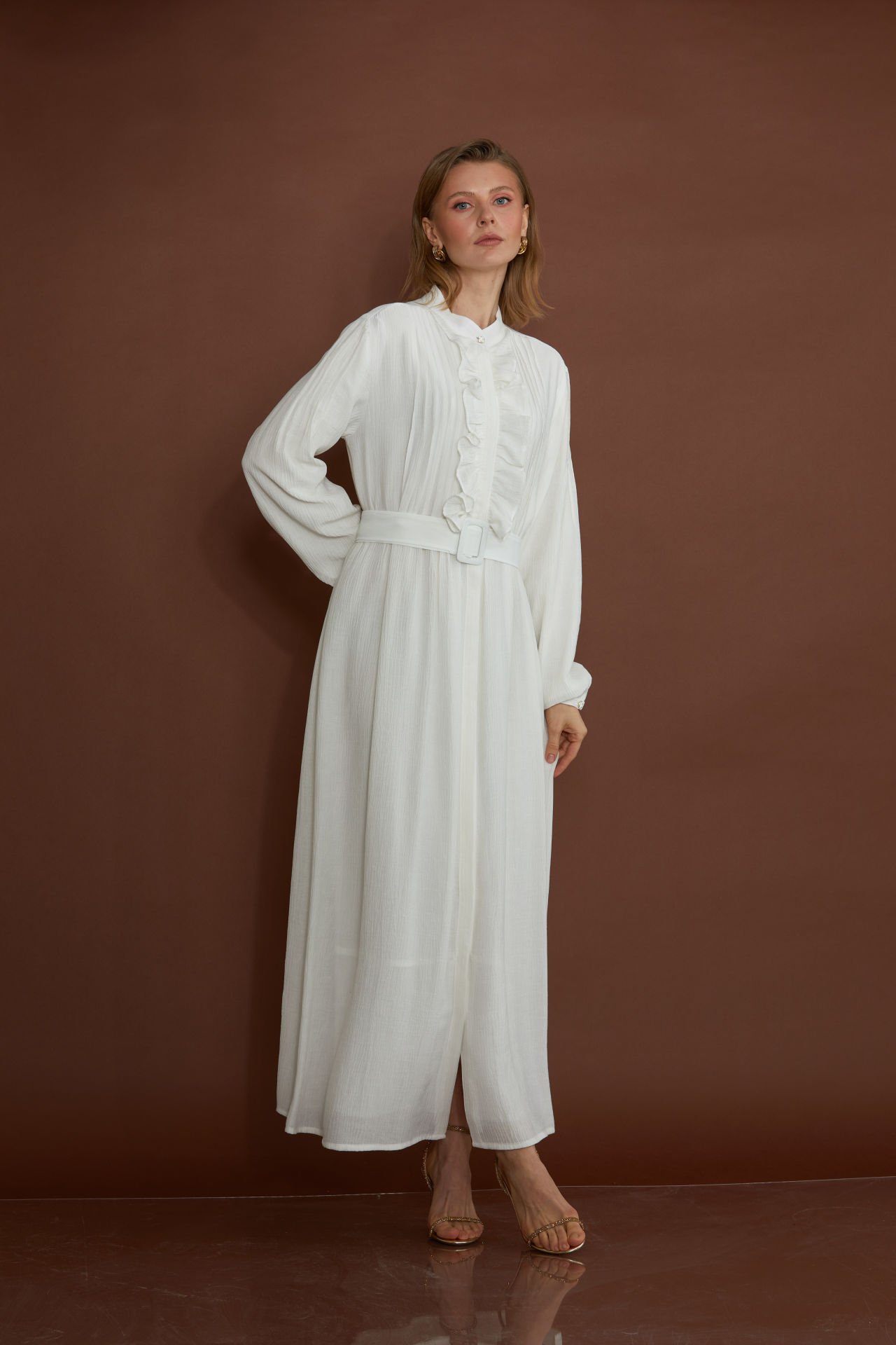 Ekru elbise, rahat kesimi ve zarif detaylarıyla her ortamda şıklığınızı tamamlar. Hafif kumaşı sayesinde gün boyu konfor sağlar. İnce işçilikle tasarlanmış bu şık elbise, gardırobunuzun vazgeçilmezi olacak. Özel günler için ideal bir seçimdir.