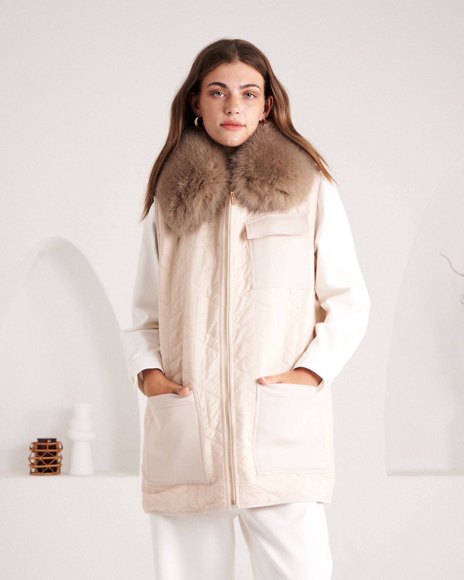 Şık ve modern tasarımıyla kürksüz yelek, hem rahat hem de stil sahibi görünmek isteyenler için ideal. Hafif ve nefes alabilir kumaşı sayesinde tüm gün konfor sağlar. Her kombinle uyumlu, zamansız bir parça olarak gardırobunuzda yerini alacak.