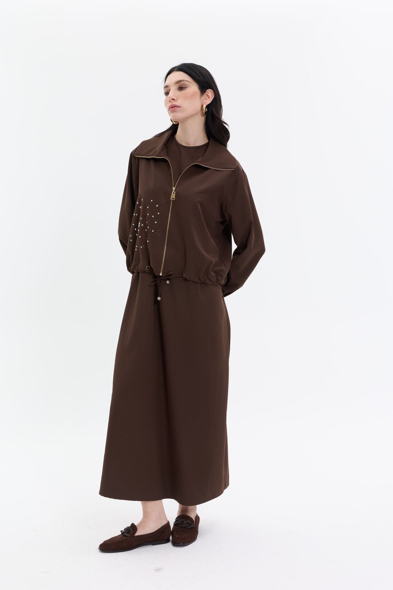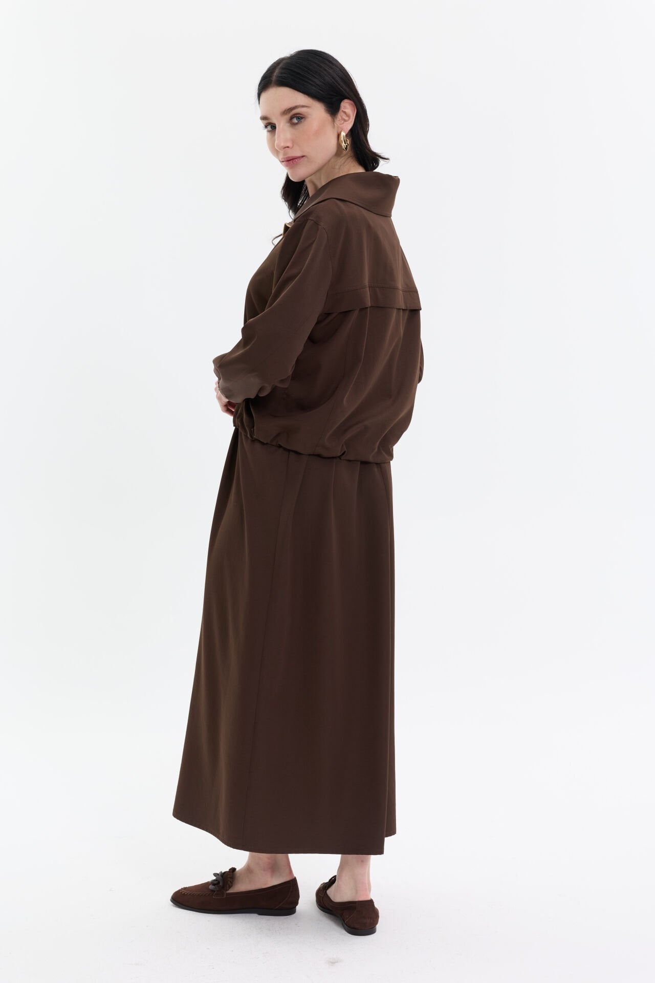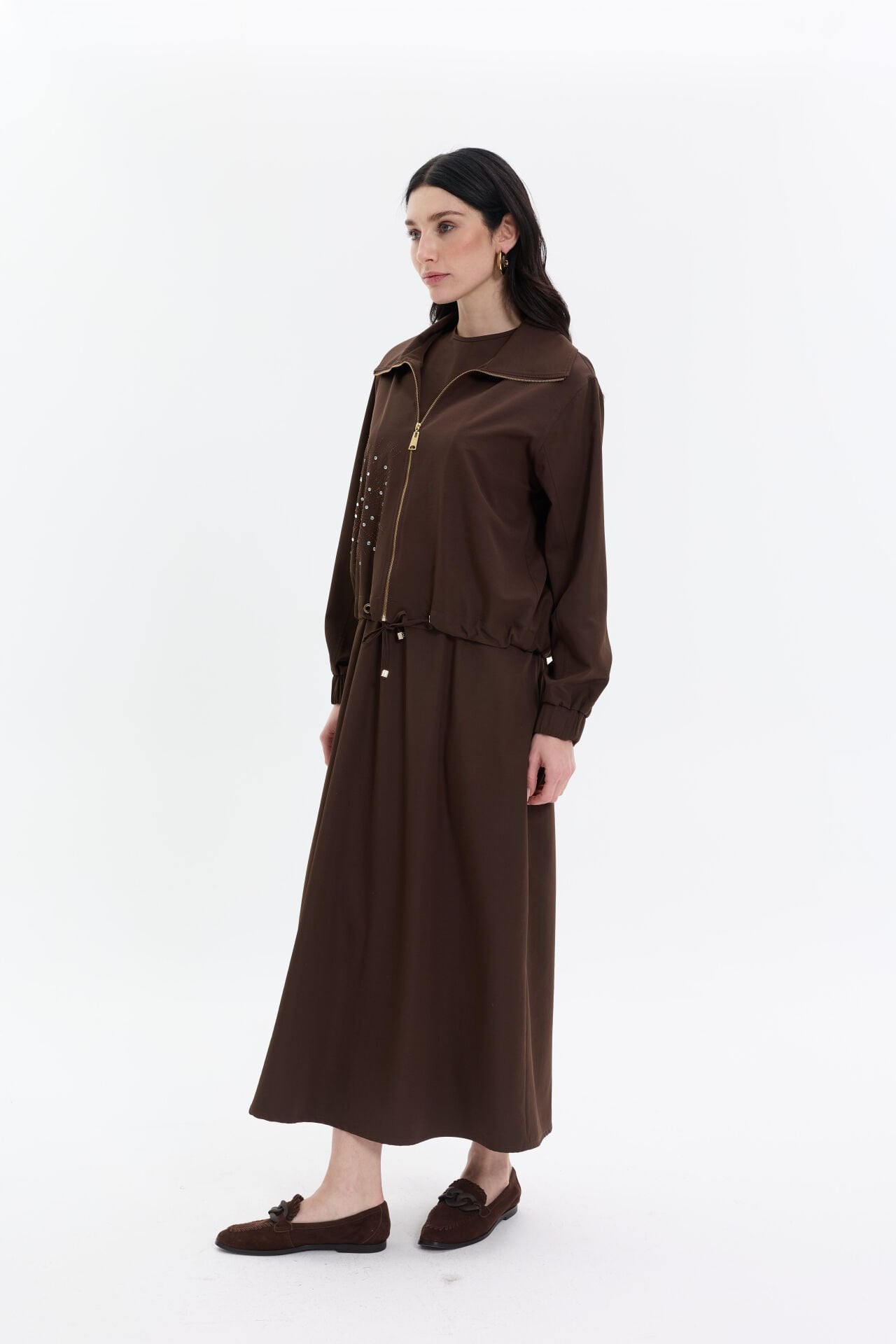 İki Parçalı Elbise Takım Kahve
