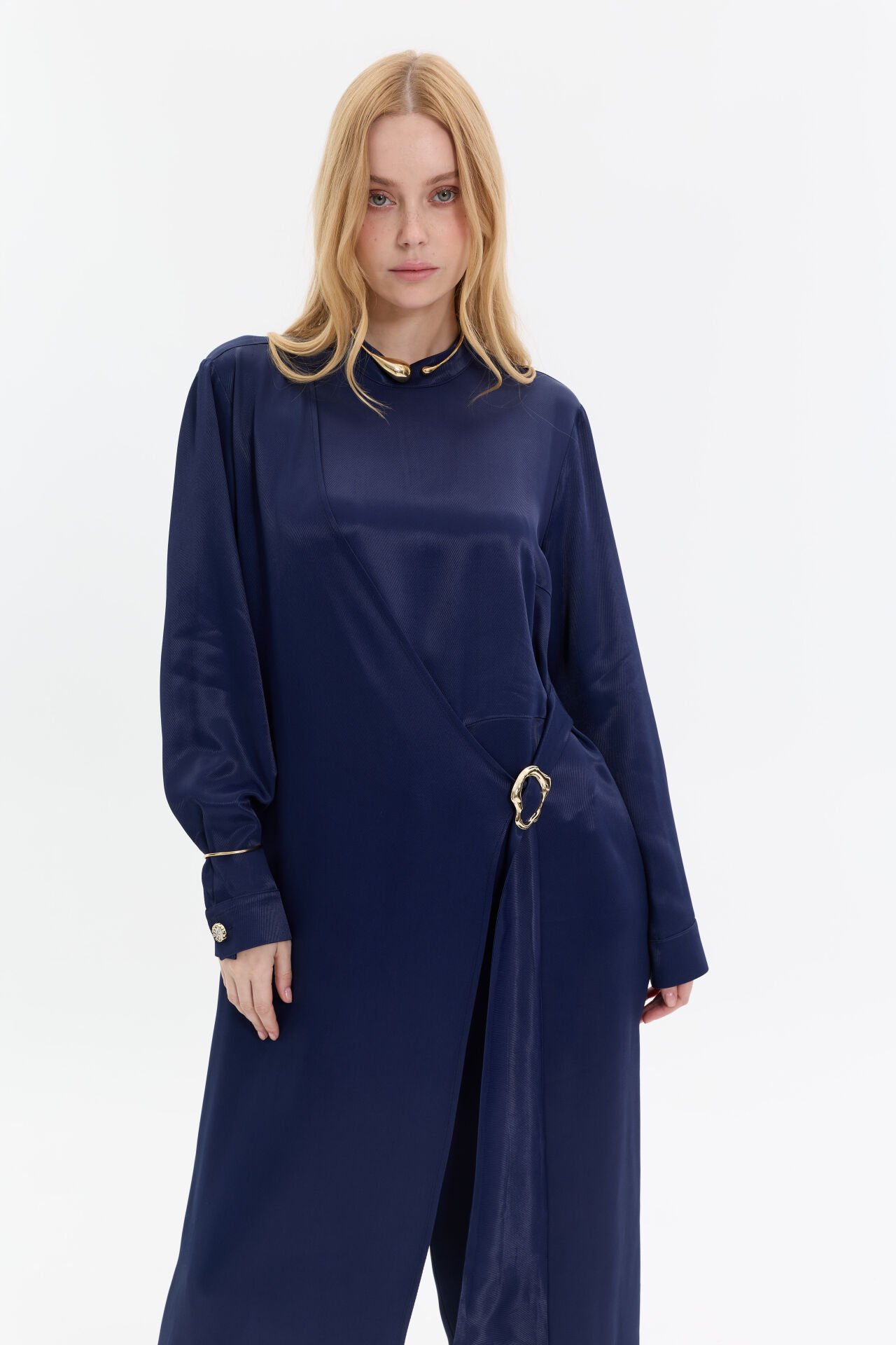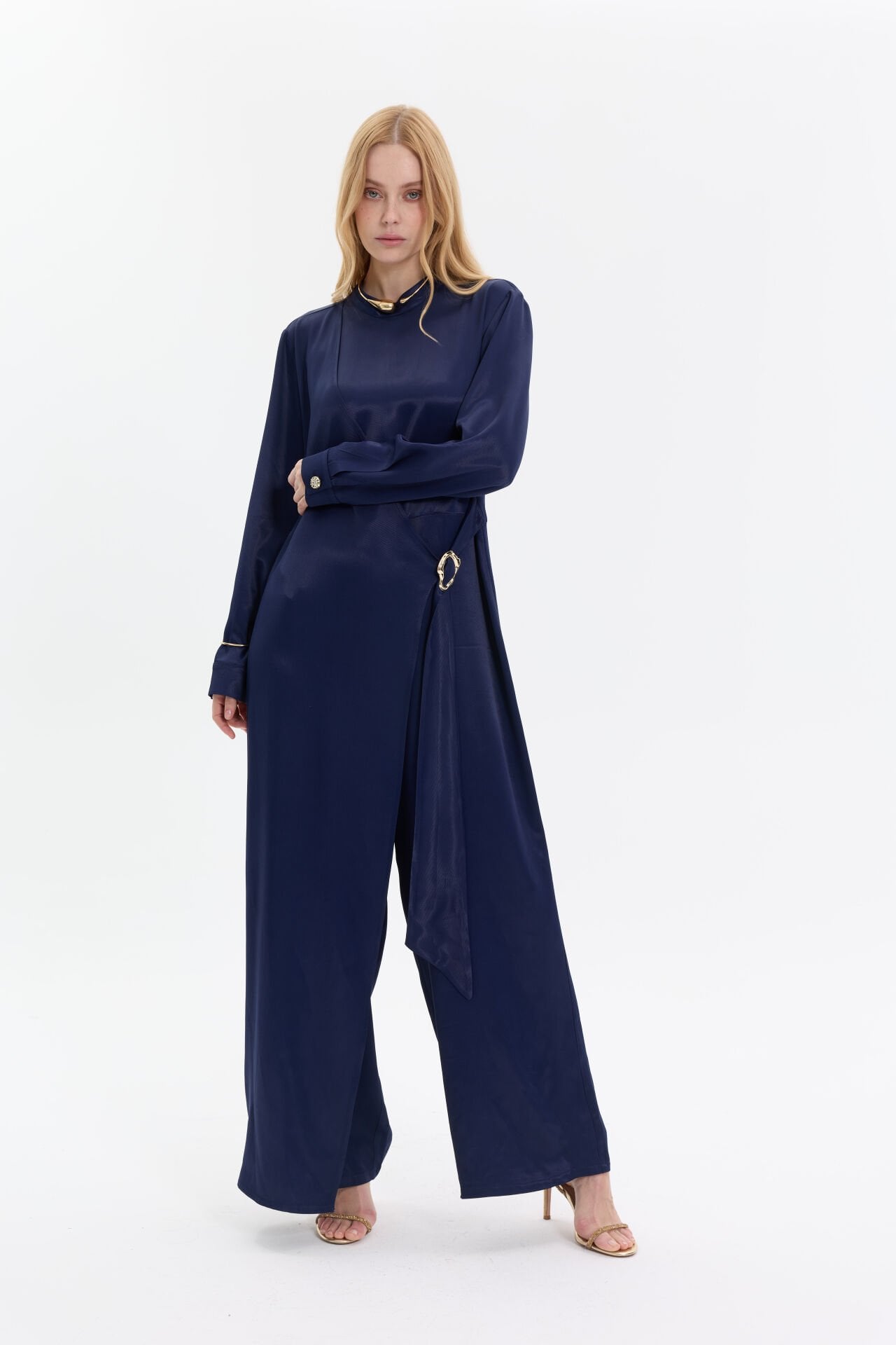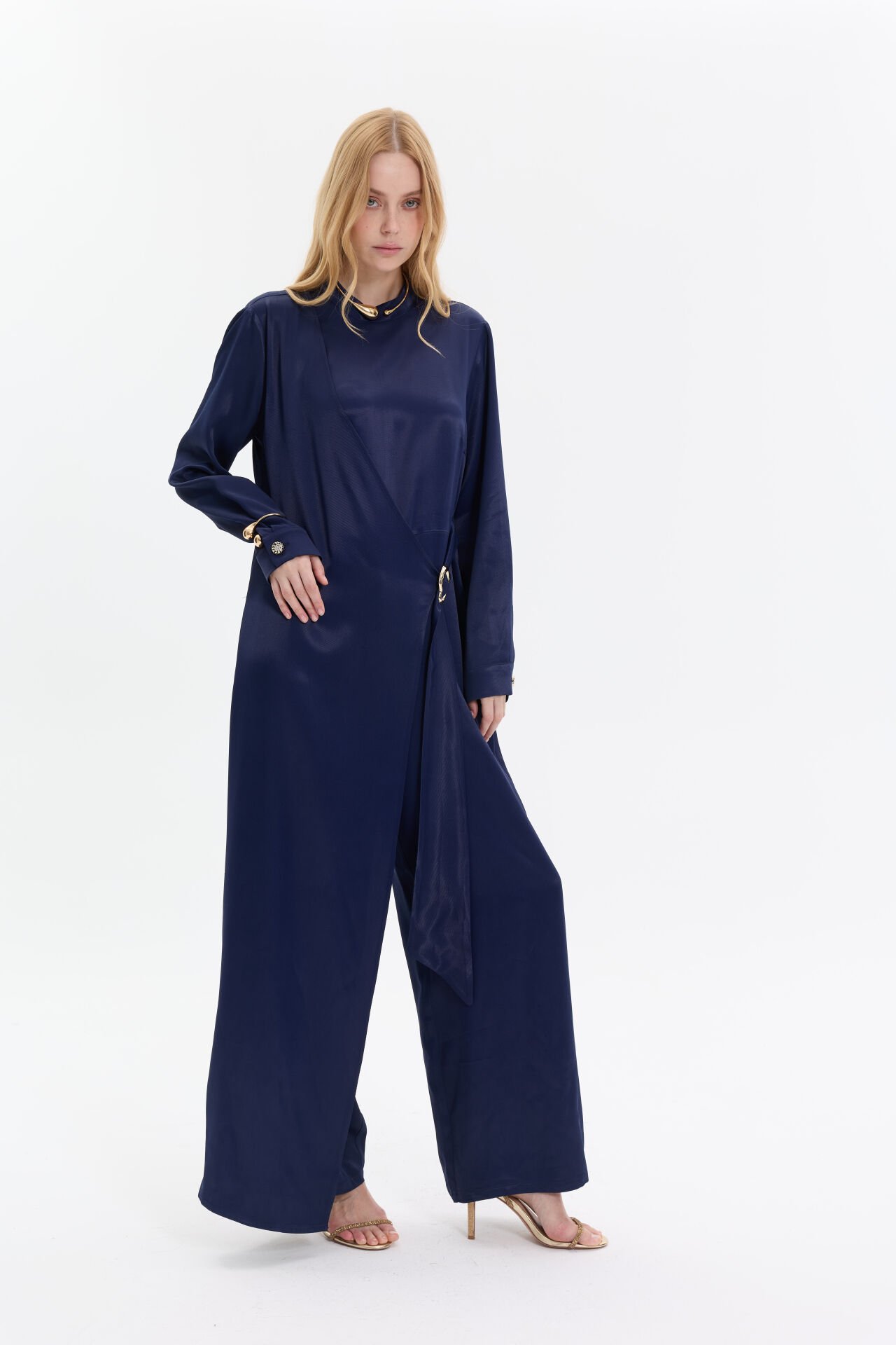 Hem şehir şıklığında hem de özel davetlerde rahatlıkla tercih edebileceğiniz bu tulum, zamansız lacivert tonu ile asil bir duruş sergiler. Topuklu ayakkabılarla tamamlandığında güçlü bir stil, düz sandaletlerle ise zahmetsiz şıklık sunar.